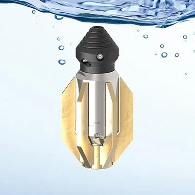 The Rotodrill is a universal pipe cleaning nozzle suitable for pipe diameters between 2" and 10", depending on the design. Its special feature: Thanks to its cone-shaped rotating front jet, the Rotodrill mills through the clog in one operation. At the same time, most of the available water volume pushes the Rotodrill forward and transports the dirt out of the pipe. Customized repair kits allow for quick, easy maintenance.